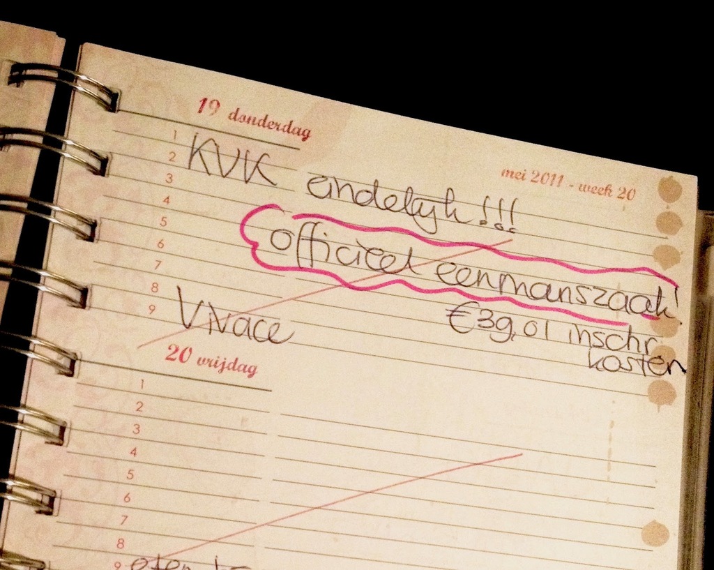 Een slaapkamer richtte ik in als muzieklokaal, op het raam plakte ik de letters ‘Muziekpraktijk Edith Rutten’ en een half jaar later, op 19 mei 2011, besloot ik het bij de Kamer van Koophandel officieel in de boeken te laten zetten: “Eenmanszaak – Kunstzinnige vorming van amateurs”. Er was namelijk geen twijfel over mogelijk. Dit wilde ik. Eigen baas zijn, geen ‘9-to-5’ baan, elke dag anders, afwisseling en uitdaging. Tussendoor wil ik even een hulde brengen aan de verschillende (boven)buren die ik in die jaren heb gehad. Jullie hebben nooit geklaagd over alle leerlingen die dag in dag uit hun fiets voor de flat parkeerden, door ouders werden afgezet en het blauwe trapje op stormden. Dank jullie wel!