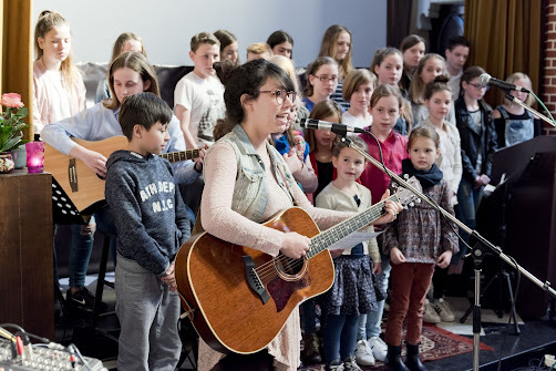 In diezelfde periode ben ik gevraagd om de nieuwe pianiste van kinderkoor Vivace Eijsden te worden. Daar heb ik meteen ja op gezegd en al snel ging ik elke week, uiteraard met de Corsa, de Bukel af om samen met Miranda in zorgcentrum de Bron repetities te geven. Het bleek een belangrijke stap te zijn geweest, want ik heb het ‘koor-gebeuren’ sindsdien nooit meer kunnen loslaten. In de jaren erna nam ik ook in Mheer het kinderkoor over (met de onmisbare Tineke die elke repetitie koekjes, sinaasappelsap en overweldigende liefde kwam brengen) en startte in Sint Geertruid het jongerenkoor Joy dat momenteel nog steeds bestaat onder de naam Zangkoor Sing for Joy. Vorig jaar richtte ik kinderkoor Tsjakka! op. Een kans voor alle kinderen uit de gemeente om ongedwongen en zorgeloos te genieten van zingen en dansen.
